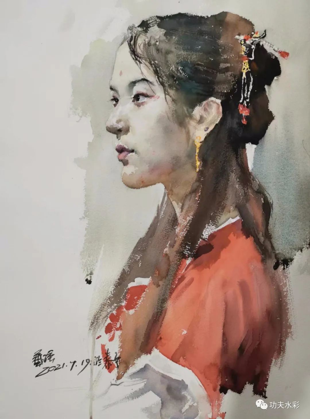 《小演員一一泰寧芮瀅肖像》水彩畫 61x46cm