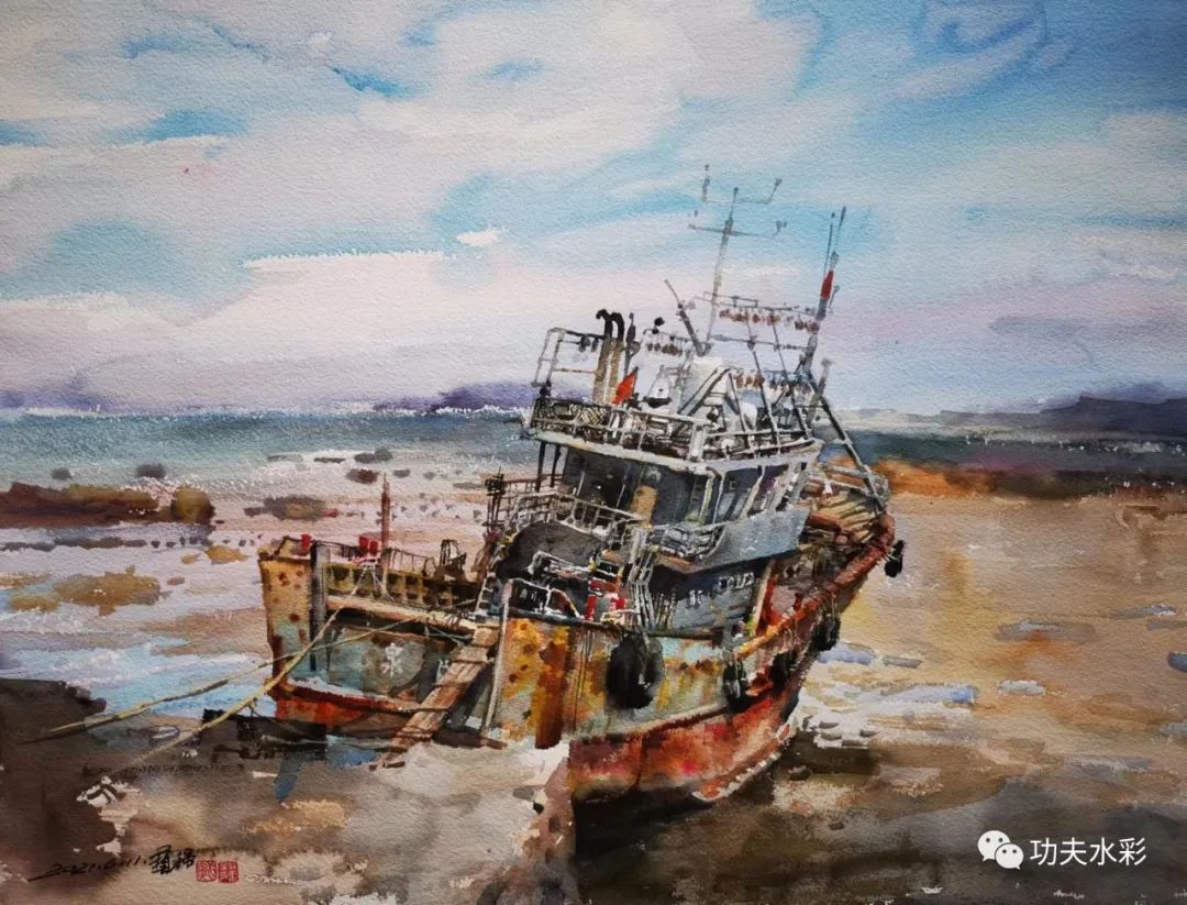 《風(fēng)和日麗一一泉港峰尾古鎮(zhèn)海邊寫意》水彩畫 46x61cm