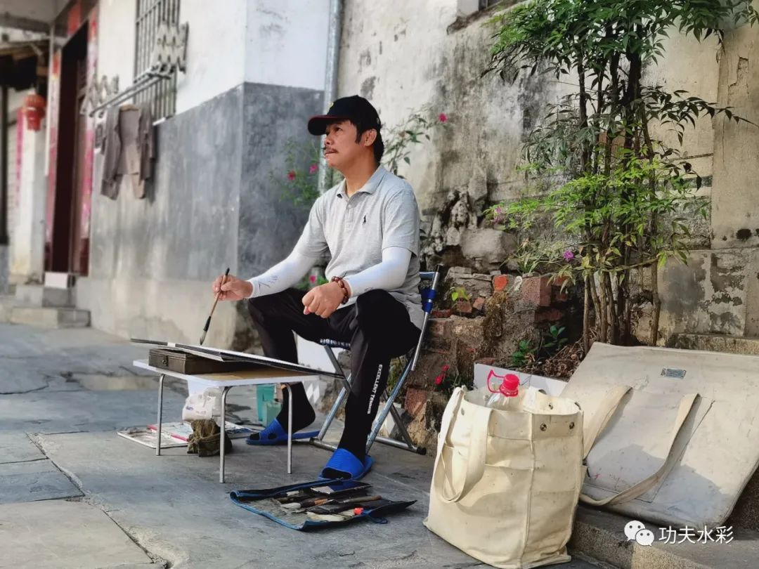 《初次到婺源一一婺源思溪延村故事之十》水彩畫 46x61cm