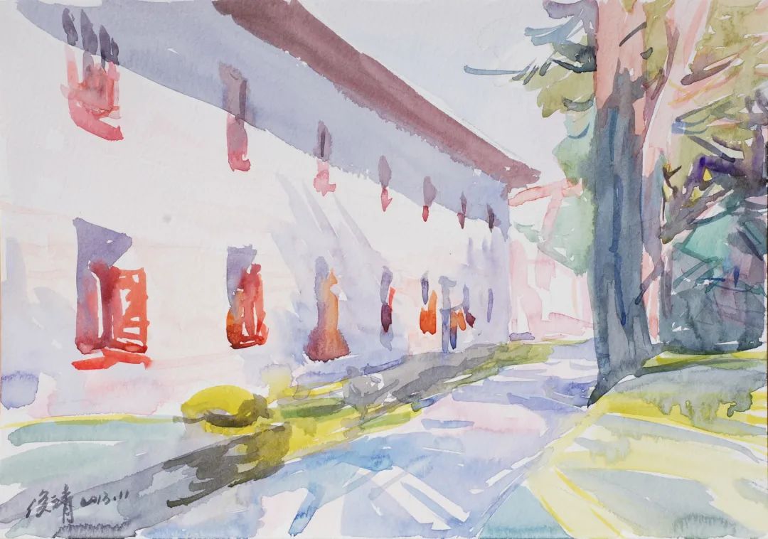 本科雖主修油畫,然得益于此前全面的繪畫訓練,我的國畫基礎也不錯,洪惠鎮(zhèn)教授曾動員我選國畫專業(yè)。所以,我會從中國畫的角度來理解水彩的用筆、構圖等,尤其寫意畫,它們都是看似簡單,實難掌控,如何控制結構走向、這一筆何時停下、畫面出現(xiàn)意外情況如何“救場”、是否改變焦點尋找另一個突破口等等。這些知識,傳統(tǒng)的學習給不了我,它涉及到哲學層次,關乎畫家對生活的理解與感悟。