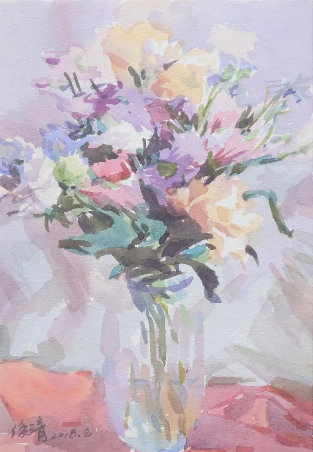水彩色彩鮮亮,清純。造型簡潔生動。技法嫻熟到位并保持水彩特質(zhì)??此淖髌房傆幸还汕逍赖母杏X撲面而來。