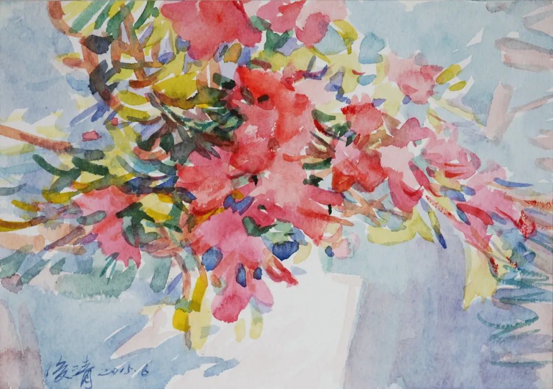畫家黃俊清筆下的花兒,淡雅清新,簡潔生動,他將自身對于自然的熱愛和體驗,傾注在花葉之間,用水彩表達著個人審美情趣以及豁達陽光的生活心態(tài)。