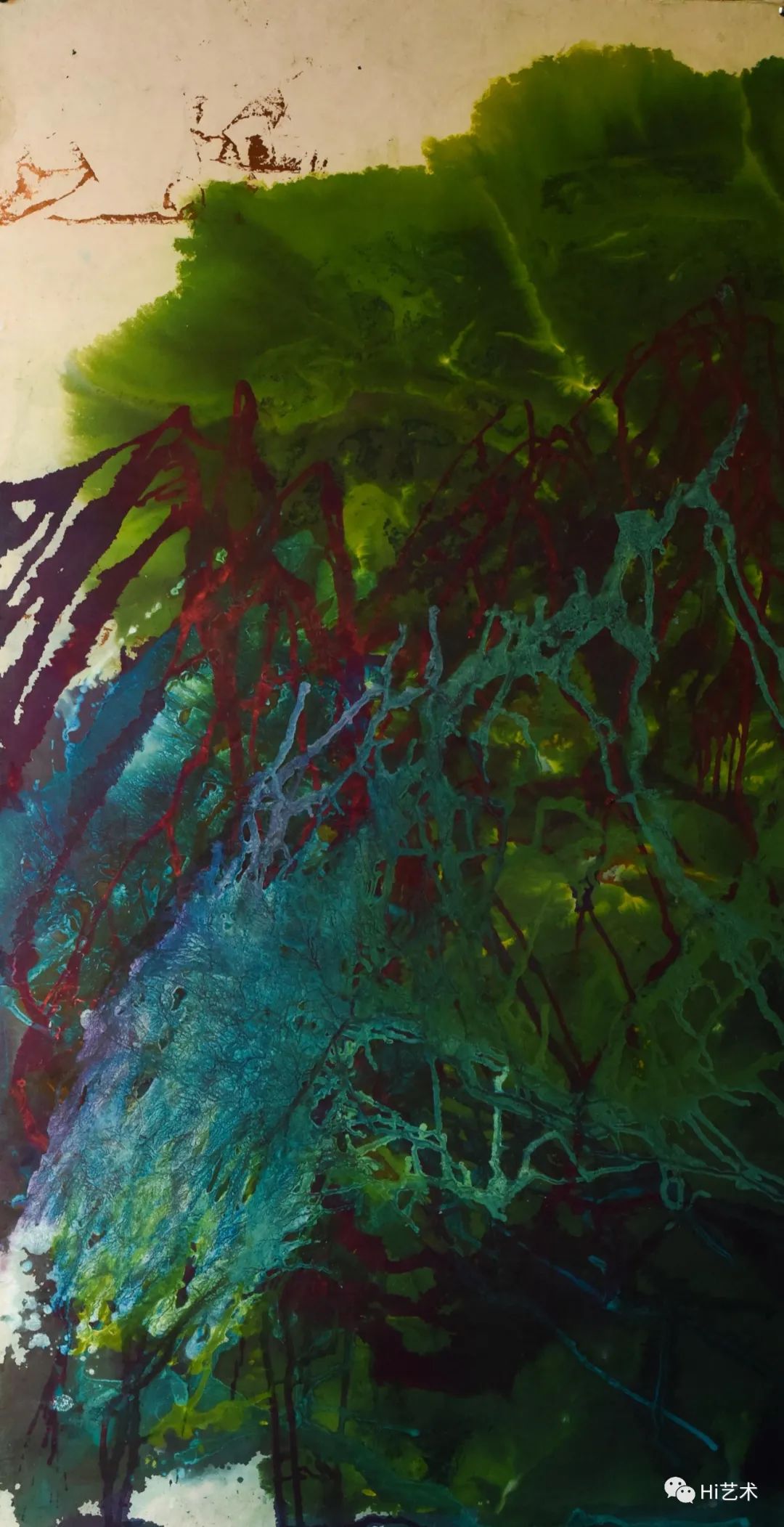 在海底潛水,壓力除了來自大氣,還來自孤獨。其他潛水員總是害怕,會不停地跟上面的人講話用以排解。而鄭忠則在海底利用幽暗的光線觀察海藻、珊瑚、魚類,觀察神奇的大自然,那是老天給他的藝術啟蒙。30多年來他一直在畫抽象,人們從他畫面中看到的抽象在他自己的世界中就是具象,是他對當年海底視野的奇妙重現(xiàn)。2019年他去澳大利亞旅游,乘直升飛機俯瞰大堡礁時驚奇地發(fā)現(xiàn),自己30多年前對大海的記憶與如今的創(chuàng)作是如此同頻共振。