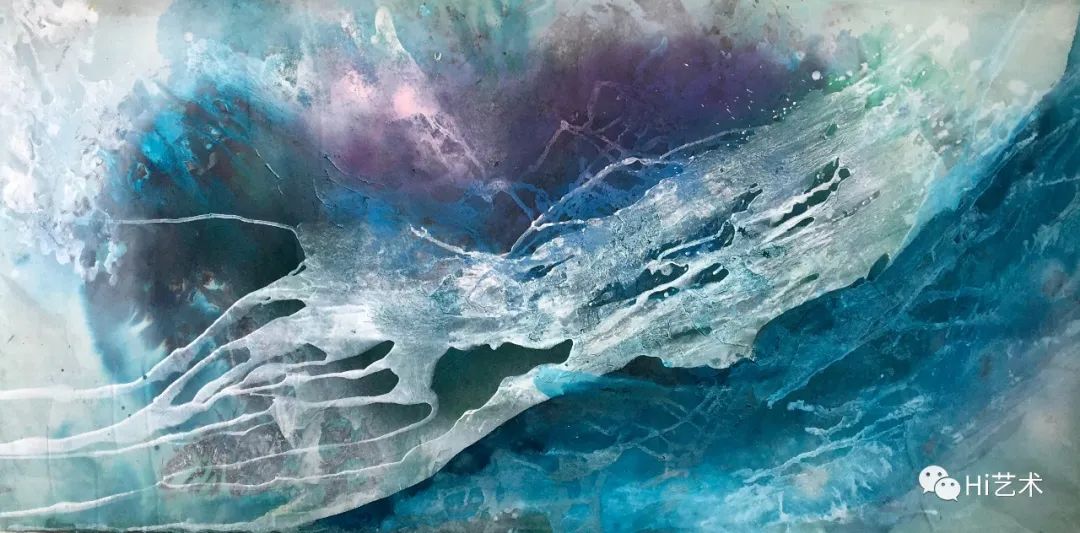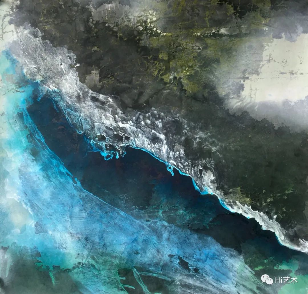 回到海洋有偶然也有必然。偶然是因為太和藝術空間的負責人賈廷峰在某次展覽上看到他的作品后建議結合他獨特的生命歷程創(chuàng)作新的作品,而多年前在海底踽踽獨行的經(jīng)歷,在他身上留下濃墨重彩的印記,也勢必會在外部力量積蓄到峰值的時候爆發(fā)。尊重每個生命個體的體驗是藝術家最寶貴的品質,也是鄭忠自始至終的創(chuàng)作本源。從生命起點和文化起點雙管齊下,便有了“海韻”系列和“云夢”系列。畫海的人很多,他的海有別于他人,水在其中不是平面,而是立起來了,源于他全方位觀察和浸沒在海里的重度體驗。