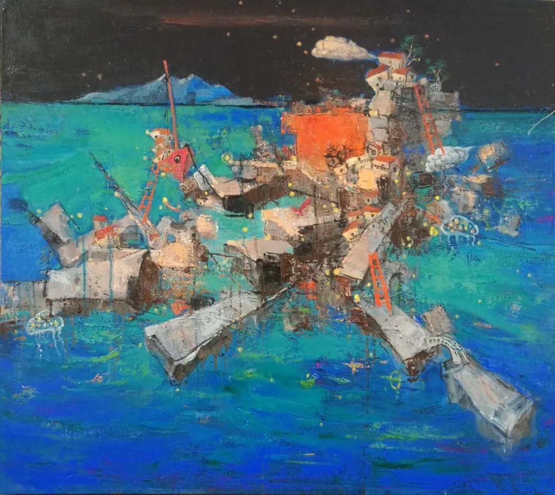 "尋門而入,破門而出",這種不斷地推翻重構(gòu)式的藝術(shù)探索,無疑是需要畫家的勇氣、悟性與堅守。這種品質(zhì),漢卿兄是與生俱來的,我相信在他的努力探索與堅守下,他的藝術(shù)世界定如家鄉(xiāng)的大海一樣廣闊與蔚藍……