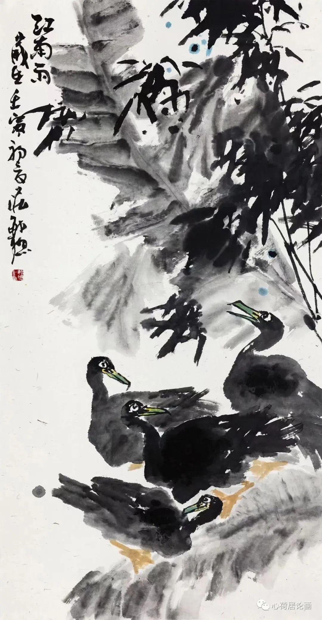 學術體系上追求高古、蒼古、古拙、古雅的藝術風格,尤其重視哲學思維、書法內(nèi)涵和時代美學風范的彰顯。主張以全方位的宏觀思維及現(xiàn)代審美意識表現(xiàn)花鳥世界,立古承今,立中承西,立足民族精神、東方意蘊,注重東方與西方、傳統(tǒng)與現(xiàn)代的融匯,強調(diào)筆墨意境和構成意識,作品氣勢雄渾博大、高古奇拔、自成一格。