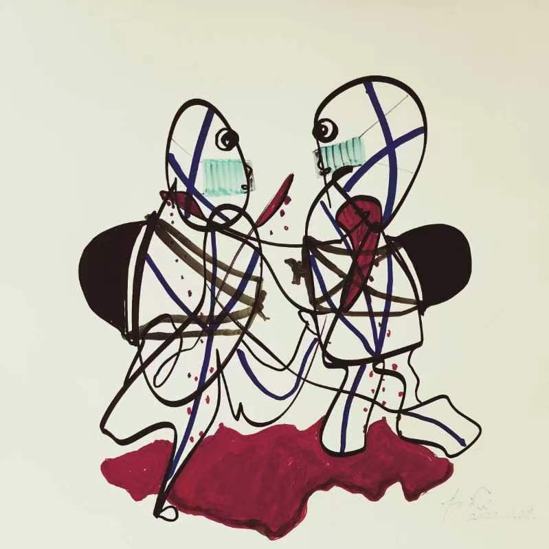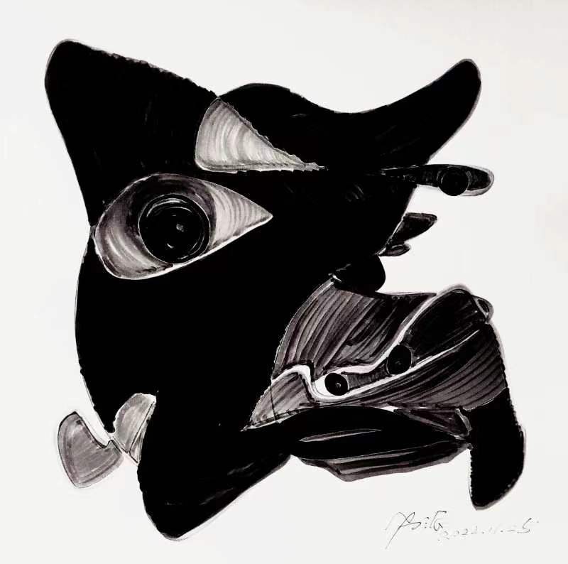 欣賞石三毛老師的作品,線條和空間一直在運(yùn)動(dòng)和變化著,它們很難被作為靜態(tài)的畫面去觀看,而是被流動(dòng)的力量所牽引。整體的韻律、線條的質(zhì)地,以及細(xì)節(jié)處重新打開(kāi)的微觀世界,形成了不同層次的觀看空間,讓觀者自身也無(wú)法停留在一處,而是必須不斷改變與作品的距離,也許是在零距離的凝視中,又或者是在遠(yuǎn)處,才最終獲得與畫面的親近感。