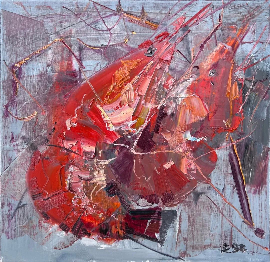 ▲《蝦 no.4》丨40X40cm | 油畫 2022年