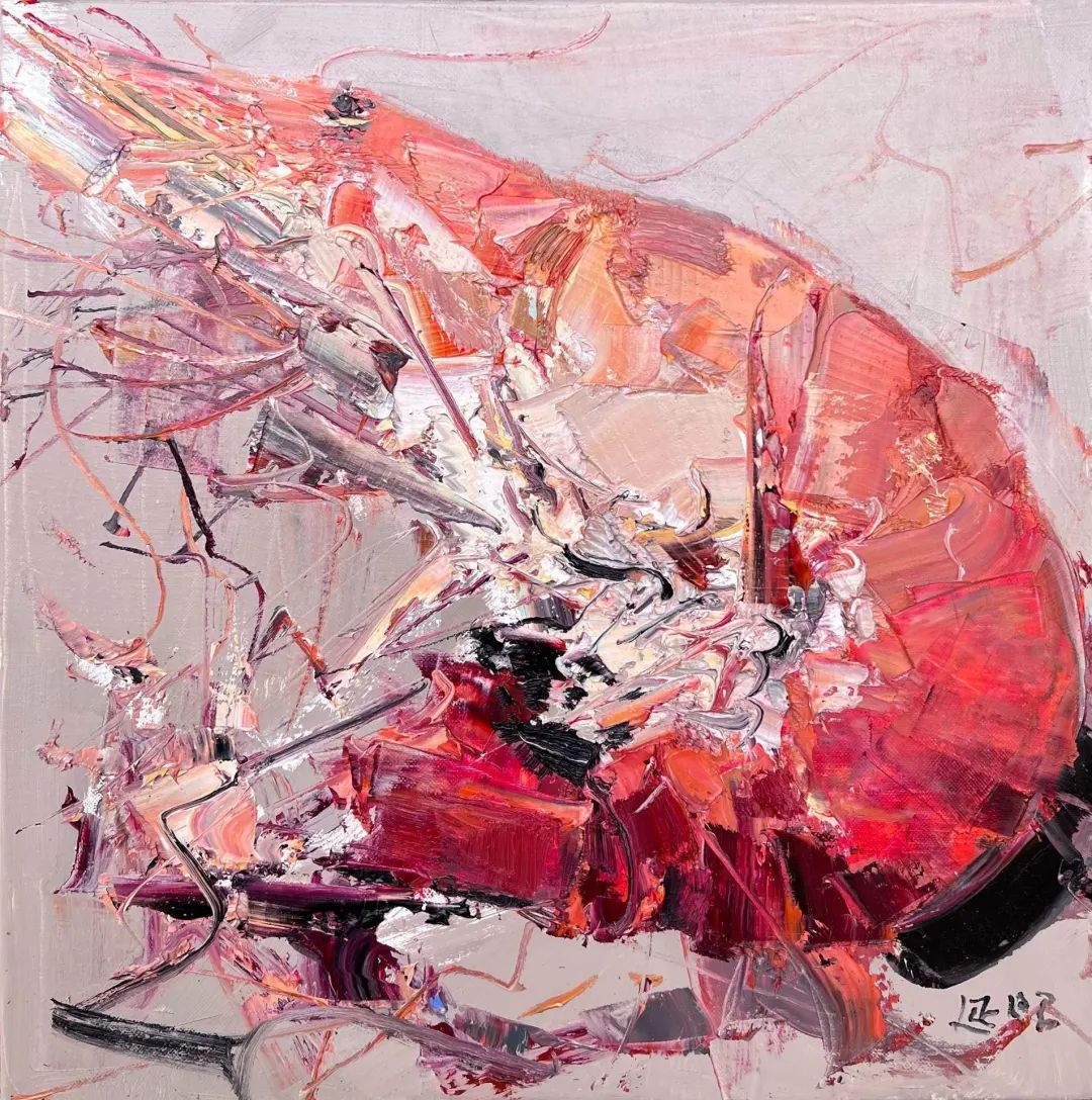 ▲《蝦 no.3》丨40X40cm | 油畫 2022年