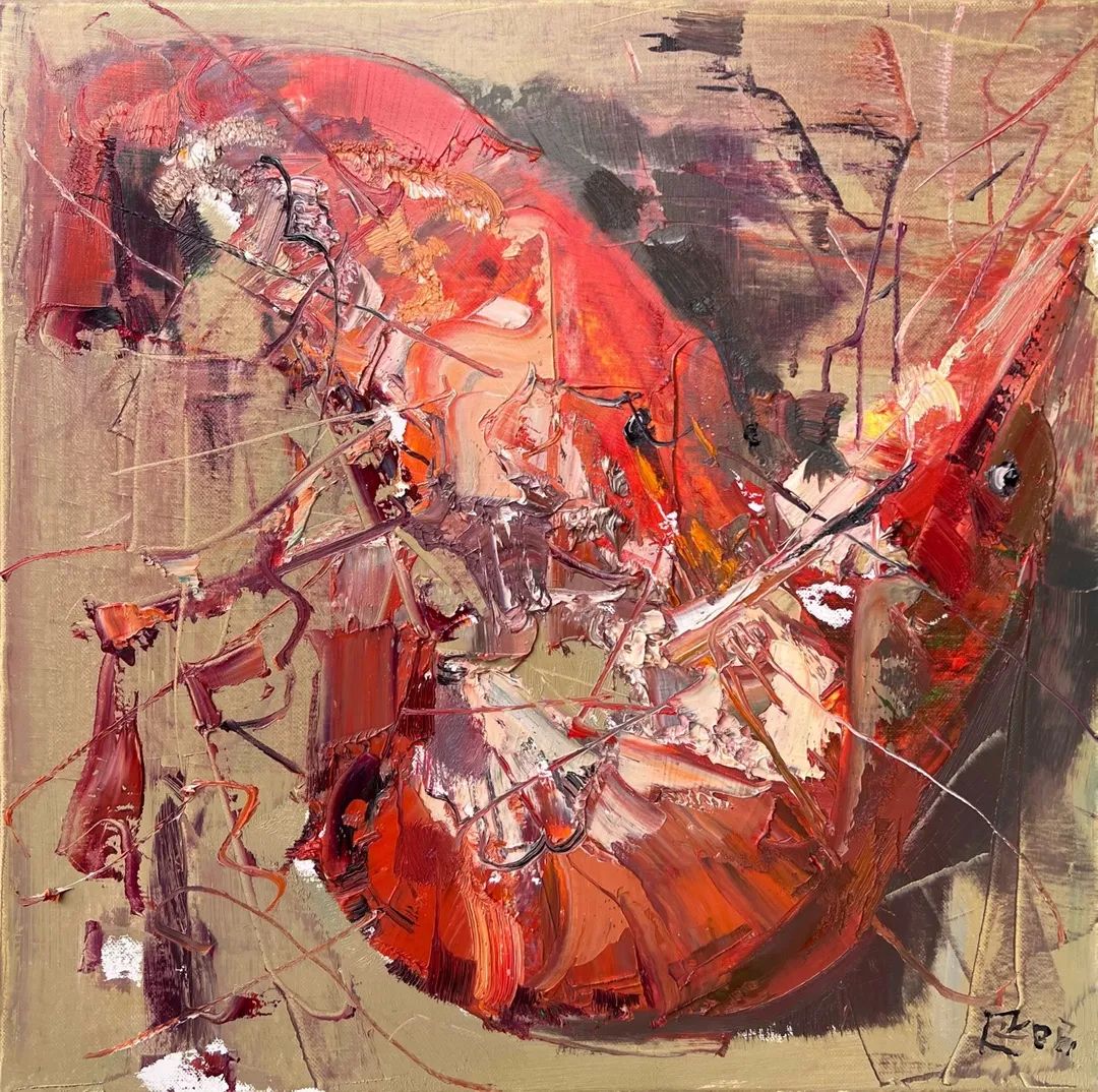 ▲《蝦 no.1》丨80X80cm | 油畫 2022年