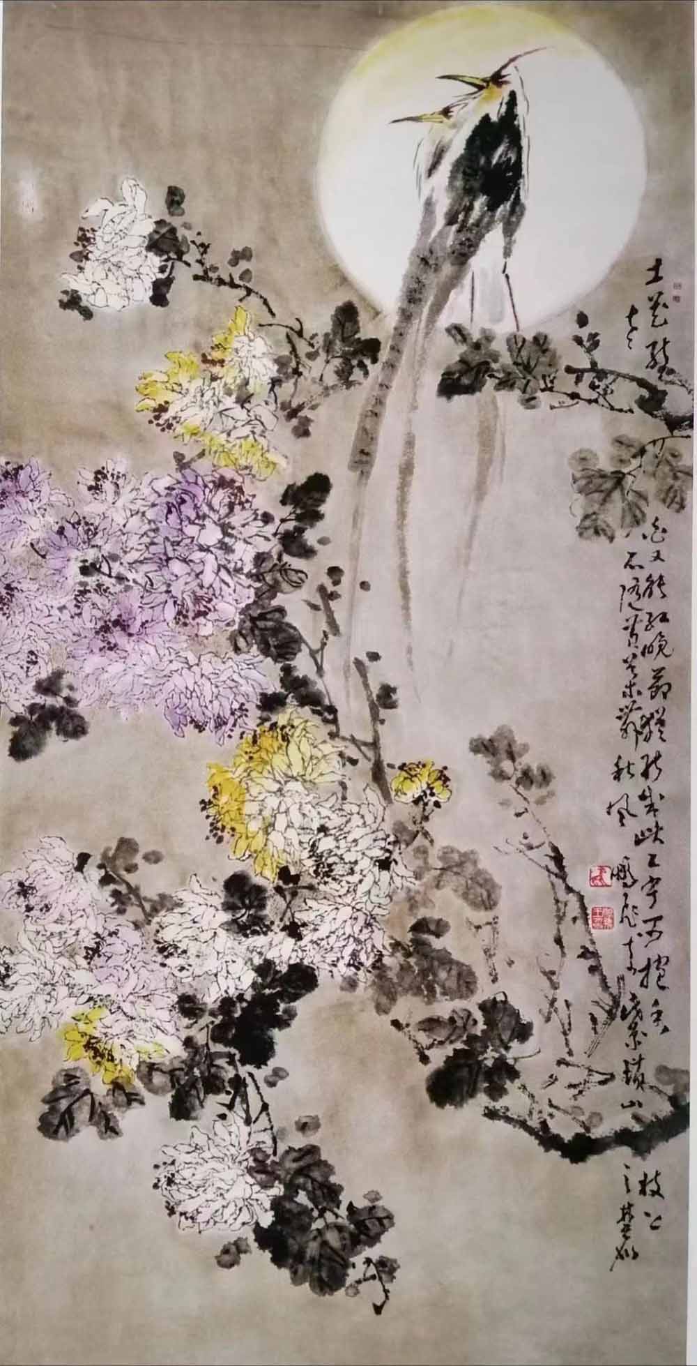 陳庚《雙鶴益壽》68cmx138cm