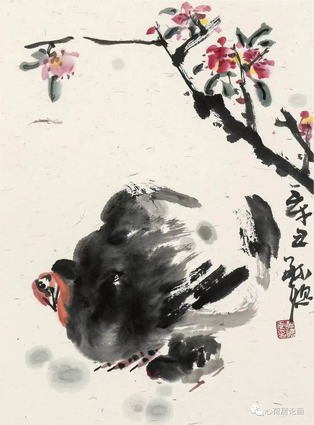 其藝術(shù)博綜集粹,淵源廣大,由近現(xiàn)代之吳昌碩、齊白石、潘天壽諸巨匠,追溯至揚(yáng)州八怪、八大山人、青藤白陽(yáng),悉為己用,蔚為一家。
