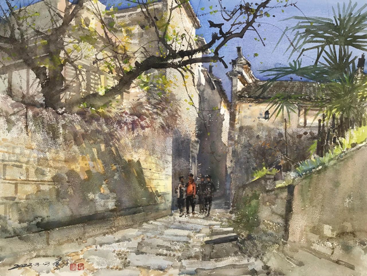 培訓(xùn)最后一天,戴藝強(qiáng)老師帶領(lǐng)學(xué)員參加“饒美鄉(xiāng)村·綠美校園”采風(fēng)寫生活動。先后趕赴黃岡鎮(zhèn)龍眼城蘇區(qū)文化公園、饒平縣圖書館新館、錢東鎮(zhèn)錢塘村古驛道、湯溪鎮(zhèn)湯溪環(huán)庫碧道、湯溪鎮(zhèn)新農(nóng)村樂島村進(jìn)行采風(fēng)寫生活動。 戴藝強(qiáng)老師躬身力行、不遺余力、與學(xué)員們打成一片,為學(xué)員們現(xiàn)場寫生示范作畫、講解,認(rèn)真點評學(xué)員作品,整個活動過程干貨滿滿,學(xué)員們收獲滿滿。