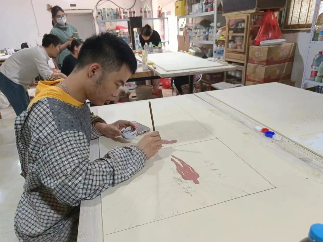 在此次余鍵老師帶領(lǐng)下,景德鎮(zhèn)之旅的研學(xué)中,學(xué)習(xí)到了制作高溫顏色釉創(chuàng)作的全面過程,從泥胚的制作到釉下作畫和對(duì)顏色的挑選預(yù)估等,創(chuàng)作過程中步步制作環(huán)環(huán)相扣緊密有序進(jìn)行。