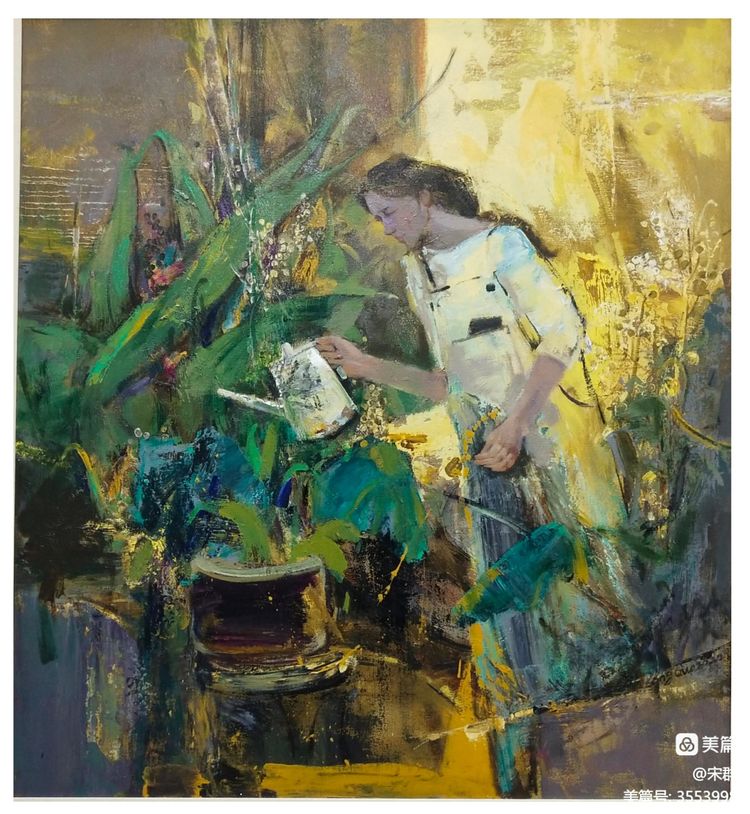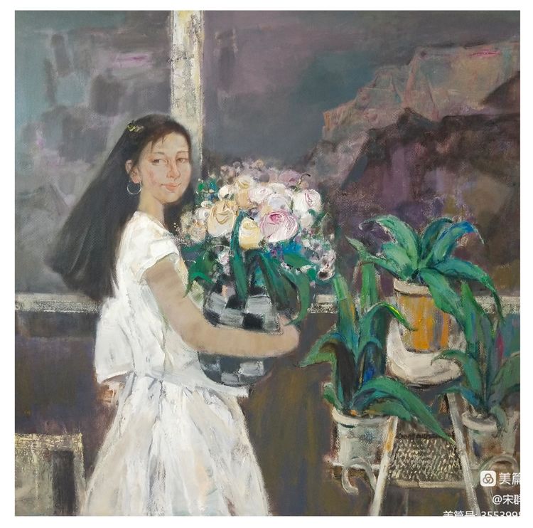 畫(huà)室經(jīng)常會(huì)跑來(lái)一群如花朵般的學(xué)生們,他們看畫(huà)的神情認(rèn)真而好奇。有時(shí)候幾個(gè)人會(huì)小聲嘀咕,或許是說(shuō)到開(kāi)心之處,他們的臉上,便會(huì)綻開(kāi)如芍藥花兒般的笑容。