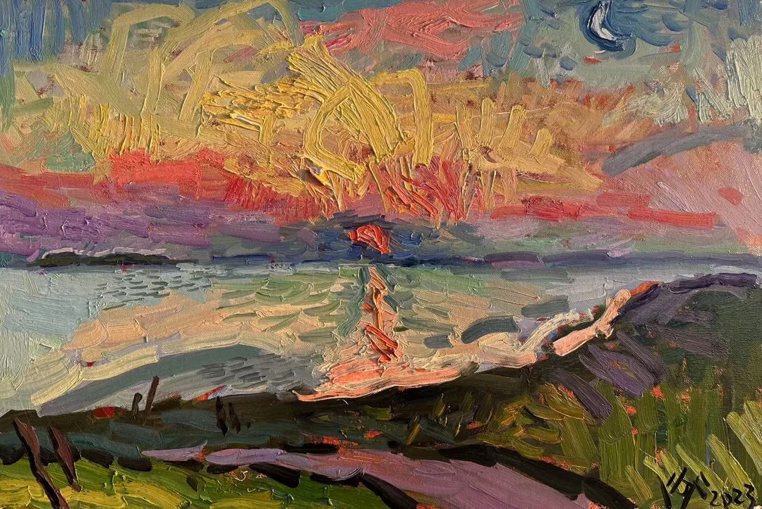 6月中旬,泉城油畫學社楊繼鋒由濟南出發(fā),自駕西藏采風,一路西行,歷時十七天,往返行程一萬多公里,沿途完成大小畫作二十余幅。一路邊走邊畫,感受川藏線的大美風景,考察西部人文風景,體味人在高原的遼闊意境。完成了他繪畫在路上的又一次遠行。