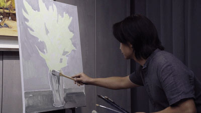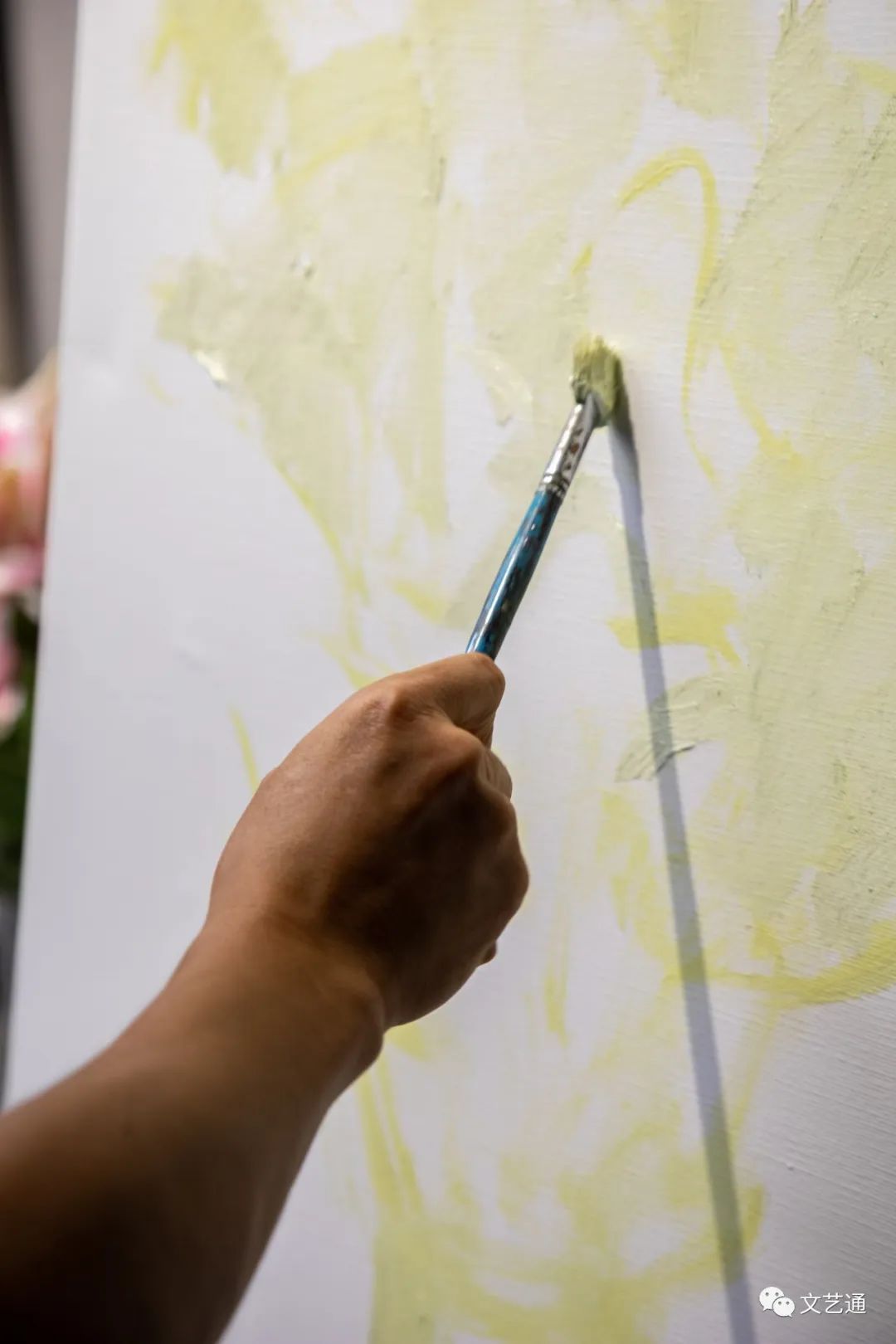 此時,背景的鋼琴曲就這樣滑入了畫作中,與肆意綻放的百合共舞,我仿佛看到一簇生命在他的筆下耀眼奪目,我想,那就是光吧。