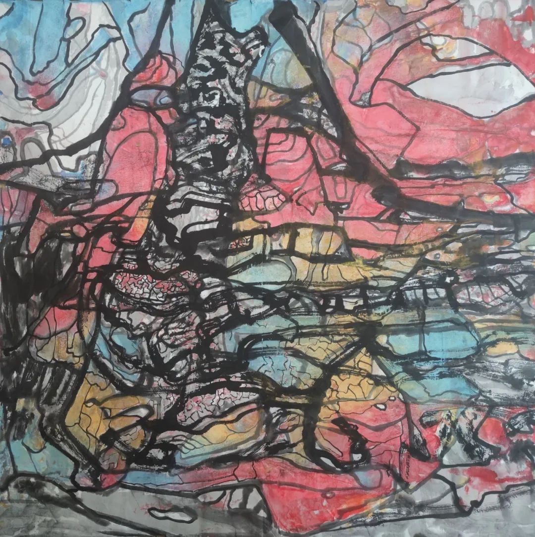 Q4:為什么選擇宣紙水墨作為創(chuàng)作媒介?在用傳統(tǒng)媒介進(jìn)行抽象主義的表達(dá)的過(guò)程中你有怎樣的心得體會(huì)和感悟,可否與我們分享?