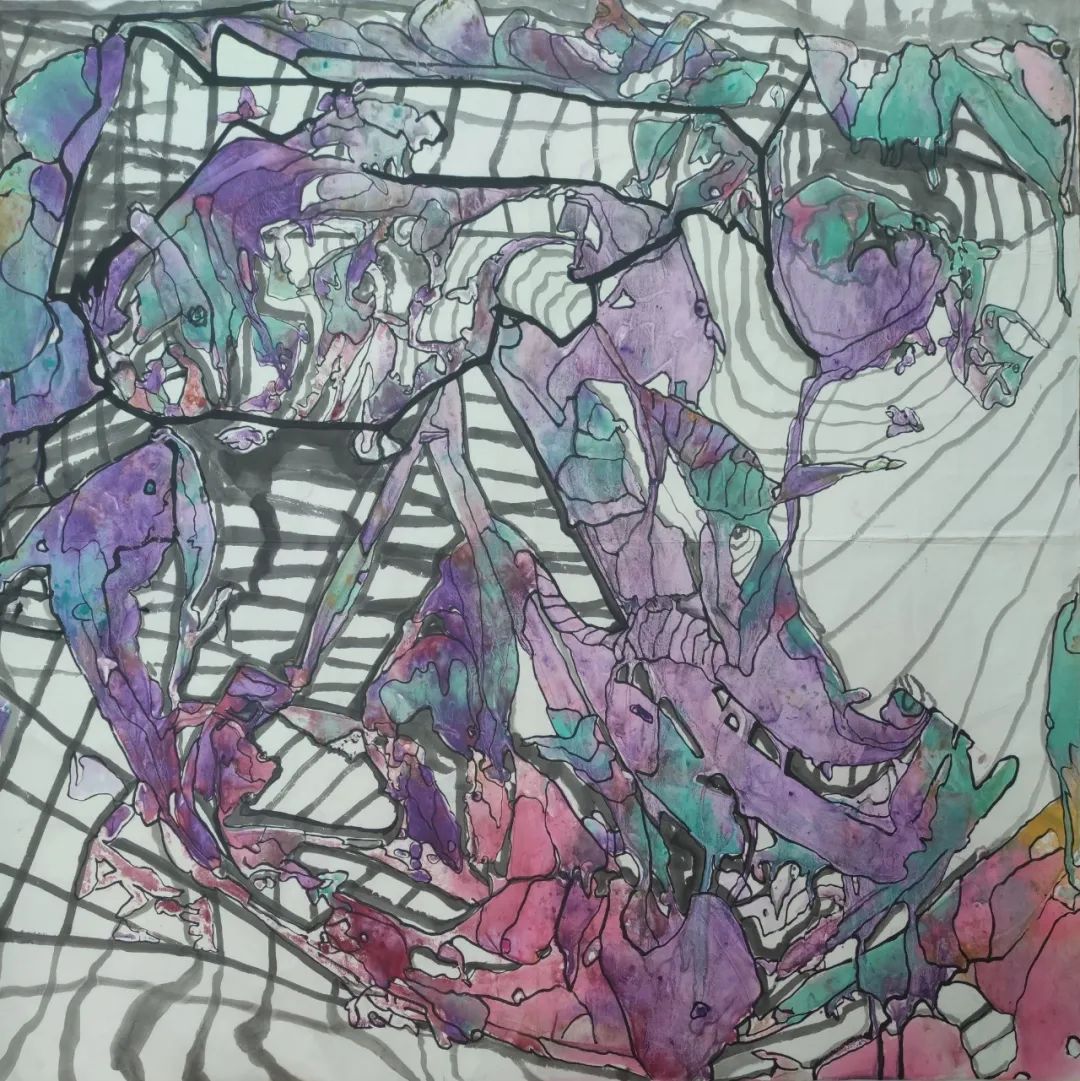 康建都|無(wú)題2,宣紙水墨,80×80cm,2022Q5:你曾在新加坡南洋理工大學(xué)學(xué)習(xí)藝術(shù)史,沒(méi)有選擇成為藝術(shù)史學(xué)者而是職業(yè)畫(huà)家的機(jī)緣是什么?你認(rèn)為藝術(shù)史的學(xué)習(xí)對(duì)藝術(shù)創(chuàng)作有怎樣的幫助?