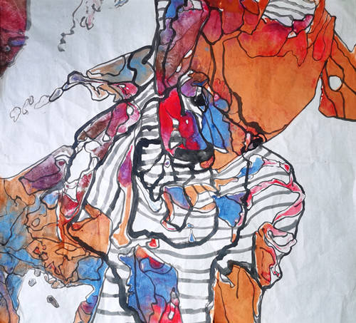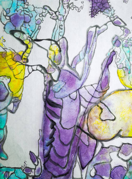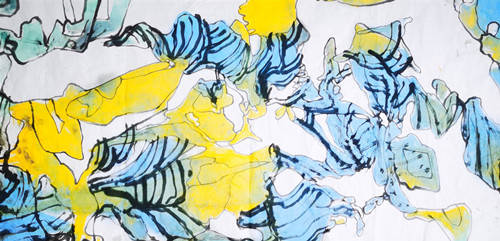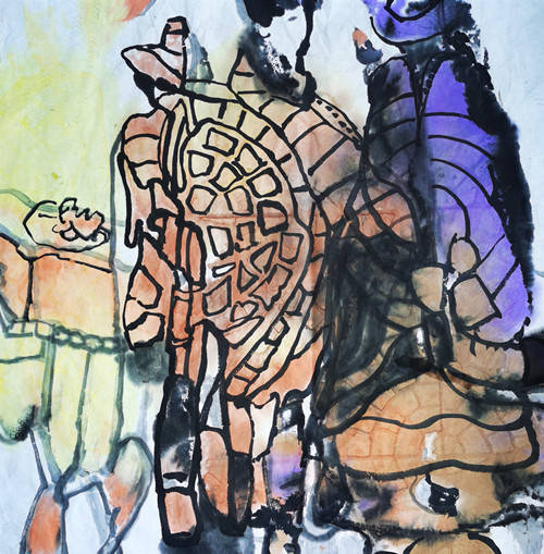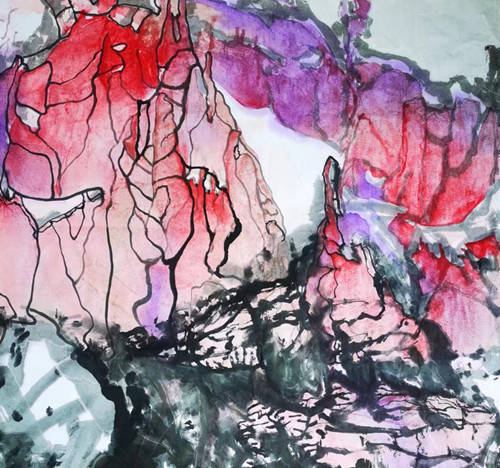 我讓顏色定畫面的基調(diào),用筆墨帶著物象,生活休驗,和情緒在色基上行走,它時而神遊遠(yuǎn)方,時而在某處邂逅靜思,最后又被理性規(guī)整。我想讓筆墨軌跡和思想情感產(chǎn)生聯(lián)系。讓走筆:粗細(xì),濃淡,曲直,聚散,方向,形狀賦予特定的意義。