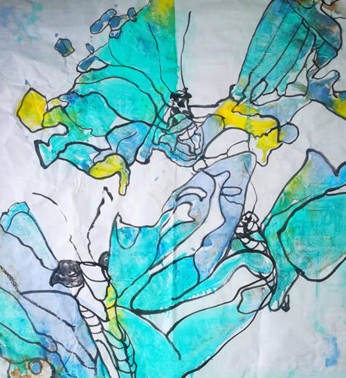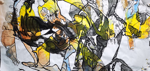 近幾天的畫放入了白描,抅入了很多細(xì)節(jié),并將其融入到大的構(gòu)成。這些小圖示是隨機(jī)的有物的特征,但是枝璃破碎的,點(diǎn),線,曲,直,走勢,疏密,節(jié)奏,在仔細(xì)觀察中可以時不時地感受到,物和情,我認(rèn)為人對景物和情感的記憶都是混濁狀態(tài)的,些畫就是這種狀態(tài)的寫照。觀者通過局部放大并加入自己的生活體驗定會有驚喜。
