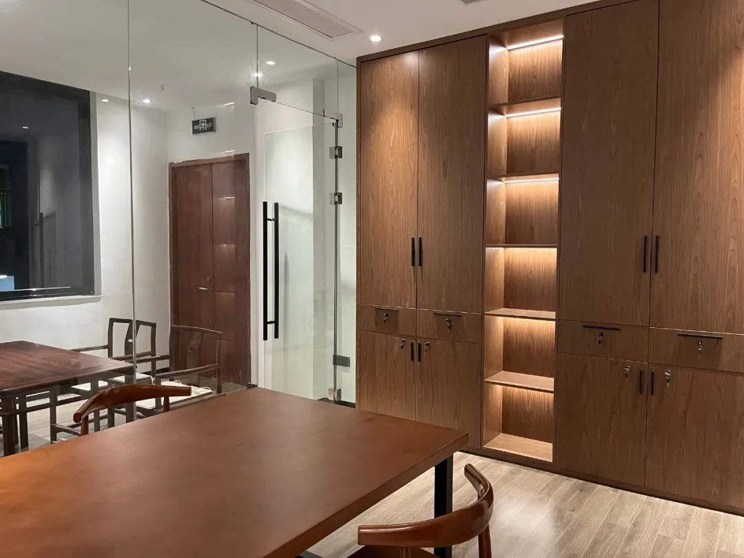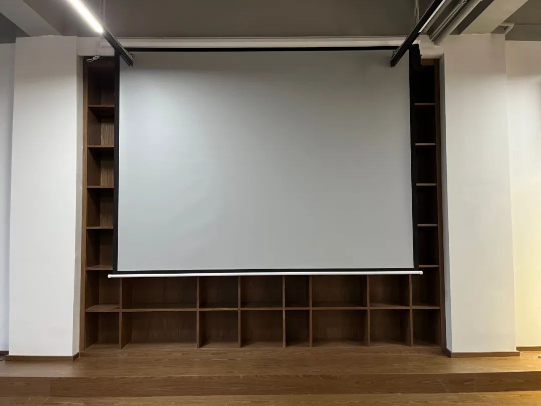 書(shū)柜可垂落投影布,提供多媒體設(shè)備