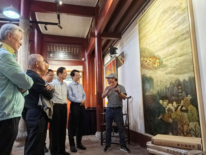交流活動(dòng)中,中國民間文藝家協(xié)會(huì)漆藝委員會(huì)副主任兼秘書長、閩江學(xué)院教授周榕清就福州漆藝的歷史與現(xiàn)狀、行業(yè)與高校漆藝人才培養(yǎng)進(jìn)行了介紹。同時(shí),周榕清教授還重點(diǎn)介紹了其近年來創(chuàng)作的《古田會(huì)議會(huì)址》、《風(fēng)展紅旗如畫》兩幅漆畫作品被國家級(jí)博物館——古田會(huì)議紀(jì)念館收藏,《春和景明》漆畫作品被收藏并長期陳列于中國國際進(jìn)口博覽會(huì)國家會(huì)議中心(上海)中方領(lǐng)導(dǎo)人會(huì)客室的情況。研究會(huì)常務(wù)副會(huì)長鄭云堅(jiān)教授表示:福州在漆藝文化研究、漆藝創(chuàng)作、人才隊(duì)伍等相關(guān)產(chǎn)業(yè)領(lǐng)域上擁有良好基礎(chǔ),周榕清教授的漆畫作品在全國漆藝行業(yè)中具有很好的品牌影響力。通過交流,研究會(huì)與中國民間文藝家協(xié)會(huì)漆藝委員會(huì)取得了合作共識(shí),期待通過深入合作共同攜手漆藝文化和優(yōu)秀漆畫作品的國際化推廣,用新時(shí)代語言詮釋中國品牌文化魅力,增進(jìn)中華文明與世界文明交流互鑒。研究會(huì)秘書處、《品牌文化》雜志社相關(guān)工作負(fù)責(zé)人參加了本次交流活動(dòng)。