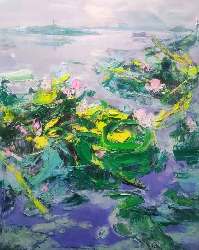 武彥君的油畫以強烈明晰的線條、簡化寫意的造型,碩大的體積感、主觀化的對比色彩,豐富的大色塊關系,取得風景油畫圖式音樂性、節(jié)奏感和形式的完整。高更強烈而單純的色彩,莫奈粗獷、跳躍的用筆、梵高線條的形式感和精神表達以及東方風格的整體色彩圖式、中國繪畫的寫意精神形成了武彥君個人鮮明的風景油畫風格。