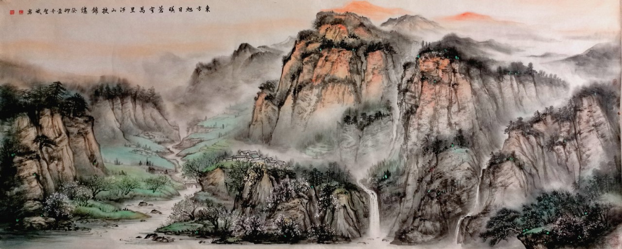 《東方旭日映蒼穹 萬里河山披錦繡》220*95CM