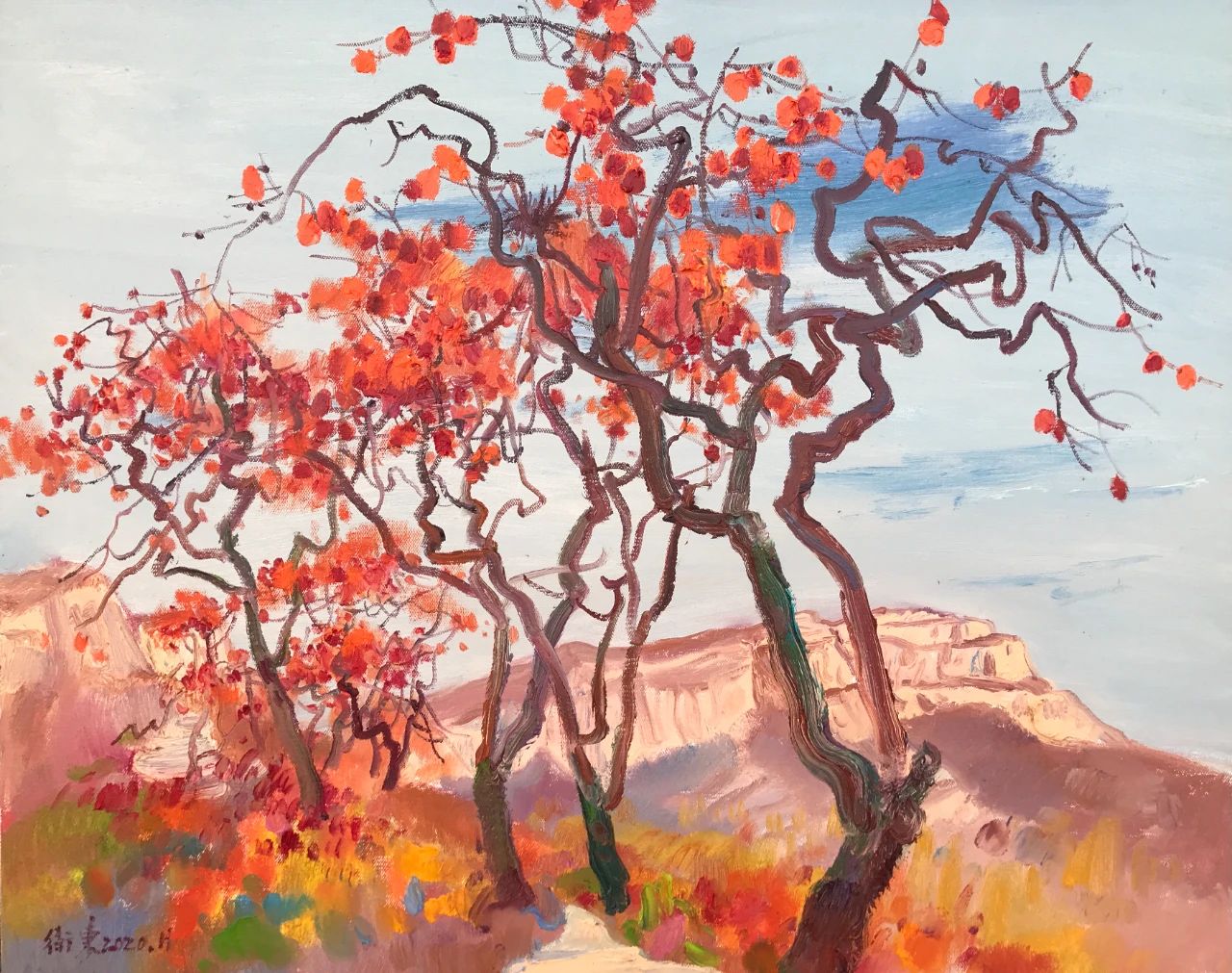 繪畫只有進(jìn)入到更加自由的狀態(tài)色彩運(yùn)用才會變得主動且生動。只有如此,色彩與色彩才可能碰撞出燦爛的火花,進(jìn)而迸發(fā)出視覺魅力和生命的激情。宋衛(wèi)東的繪畫就是在色彩的不斷碰撞中顯現(xiàn)出陽光的明媚和自然生命的嬌艷,他的風(fēng)景油畫色彩之所以能上升到本位,成為繪畫的視覺中心也在于他愈來愈強(qiáng)的主動性釋放。這樣的積累常常在自然的激發(fā)下轉(zhuǎn)化為一種本能和心靈的直呈,并瞬間釋放在畫布。他繪畫中高純度的色塊組合,使其在沖突中獲得和諧,洋溢生命的活力,傳達(dá)對自然的敬畏。