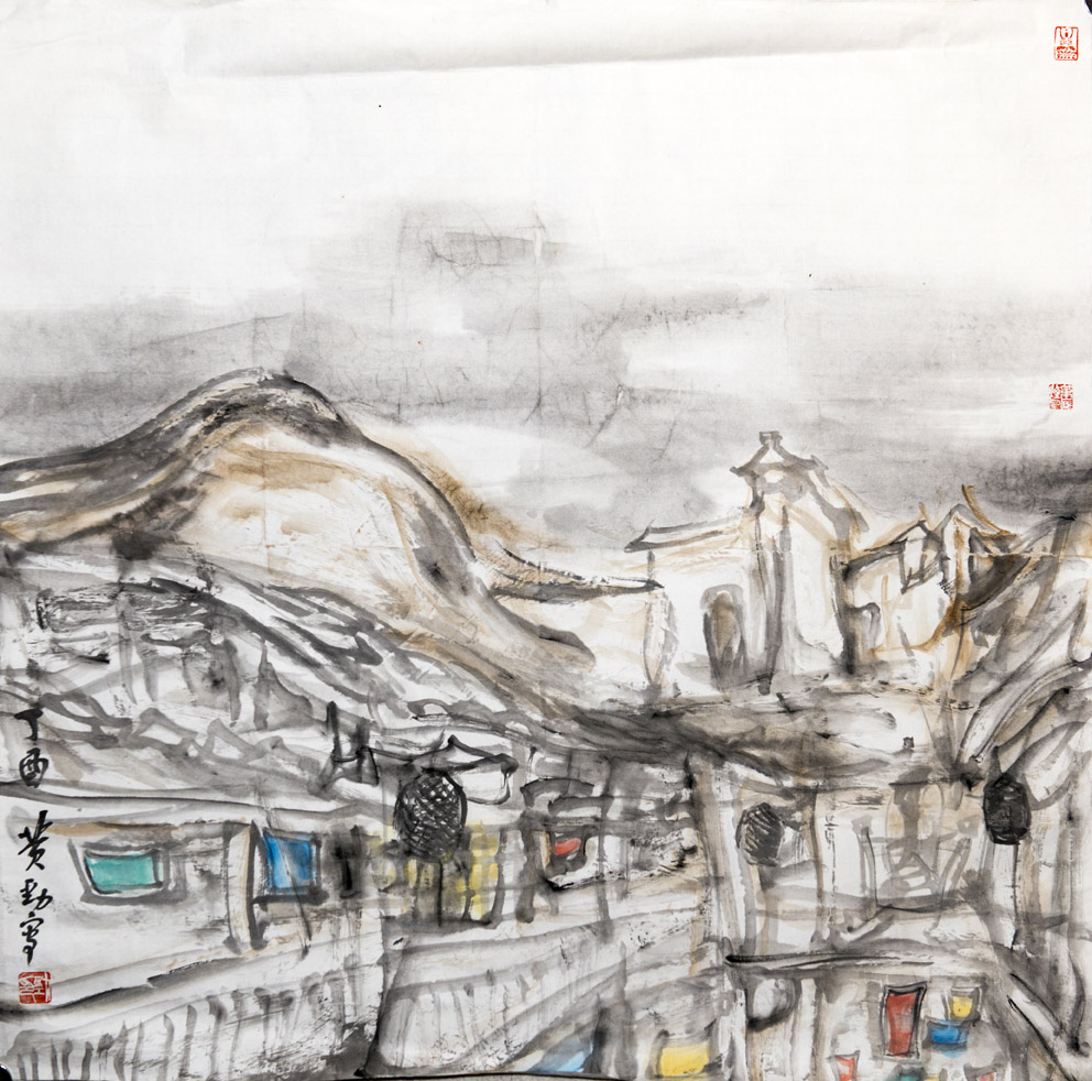 作為長期任教于地方高等院校美術(shù)教育專業(yè)的一名教師,我在人物、山水和花鳥的寫生課教學(xué)上,尤其注重地域題材與人文內(nèi)涵的關(guān)聯(lián)性研究。如見莆田媽祖宮廟繡品以紅色底布為原料,通過剪切,拼裁,縫制,刺繡等技藝制作而成。筆者構(gòu)思創(chuàng)作了較大尺幅的《繡金媽祖》,以漁女刺繡活動為主題,紅色為基調(diào),使人物形態(tài)的思想深度、表現(xiàn)力度和視覺效果得到充實(shí)和超越,充分發(fā)揮彩墨畫中色彩與水墨關(guān)系,不僅表現(xiàn)出“湄洲女”文化中的“大愛”之美,也形象地體現(xiàn)出繡金媽祖像的理想宗旨,冀望給閩臺兩岸和世界許多地區(qū)的媽祖信眾帶去福音。另外,以閩南民居建筑為題材的《紅磚厝系列》,其美學(xué)表達(dá)的出發(fā)點(diǎn)則在于彰顯意匠加工下的借景抒情之美,從深度把握住中國畫寫生中的觀察題材、選擇提取、形象轉(zhuǎn)化和筆墨表現(xiàn)等的藝術(shù)規(guī)律,抓往八閩地域文化和南洋華僑文化的共同特點(diǎn),來完成對題材背后人文意義的象征訴說。這些對繪畫核心的創(chuàng)作