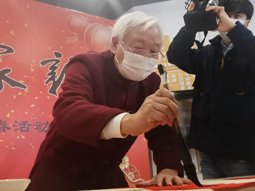 知名書法家、“金馬新四通”促進會召集人曹原彰也揮毫寫下“山歡水笑慶新春 人壽年豐歌盛世”,他并解釋,中國是強大的國家,“我們當然歌頌這么好的盛世”,他希望通過春聯(lián)將祝福、愛心與年味傳遞到千家萬戶。