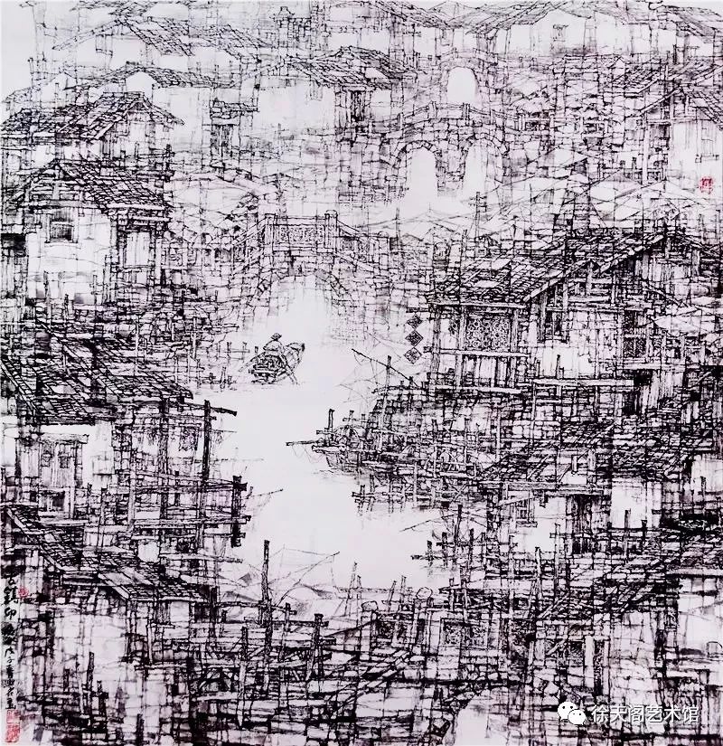 1978年我考上廈門工藝美校后,開始接受正規(guī)的藝術(shù)教育,從此步入藝術(shù)殿堂的人生軌跡,藝術(shù)創(chuàng)作也是從家鄉(xiāng)宮口河速寫開始,至今已走過許多散落大江南北不同形態(tài)的古鎮(zhèn) ,從中悟出,古鎮(zhèn)是最能反映當(dāng)?shù)氐纳鐣?huì)形態(tài),體現(xiàn)本土的地域文化,是人類發(fā)展的活樣本??v觀全國各地的古鎮(zhèn),涵江古鎮(zhèn)有其獨(dú)特的建筑樣式與水域環(huán)境,千年古韻沉淀出水鄉(xiāng)靈秀的文化符號(hào),潛移默化中誘發(fā)我的藝術(shù)靈感,從而也決定了我的藝術(shù)道路。