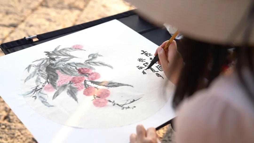 “荔枝新熟雞冠色,燒酒初開(kāi)琥珀香?!睅坠P勾勒輪廓,細(xì)細(xì)描摹上色,老漳州人百吃不厭的佳果躍然紙上。