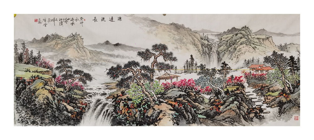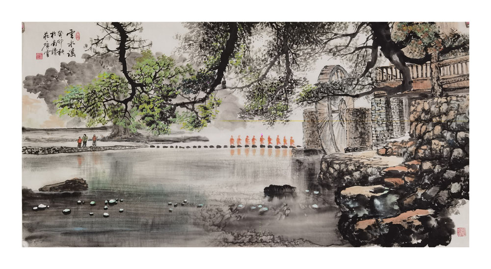 當(dāng)然,高質(zhì)量的畫家是絕不會(huì)停留在技法層面上,而是會(huì)在有難度的基礎(chǔ)上追尋于一種心緒與自然相融合的境界!否則和匠俗之所又有何異。正如清人唐岱所言,是乃胸中具上下千古之思,腕下具縱橫萬里之勢(shì),立身畫外,存心畫中,如此潑墨揮毫,方能皆成天趣。今莊廣云先生亦然,自幼習(xí)得書畫修養(yǎng)的他,是有深厚的文化底子作為依仗,后又經(jīng)李安水等名師指導(dǎo),對(duì)清四王畫作和芥仔園頗有研習(xí),常年來潛心丹青,透入性地。時(shí)至今日,所浸淫的文化素養(yǎng)和丹青學(xué)養(yǎng)都早已是深入骨髓,故而提筆繪畫是可見外師造化之心源,以德立藝是可感品修積淀之厚重,由此成為曉譽(yù)畫壇的丹青大家,也果然是功不欺世,名副其實(shí)!