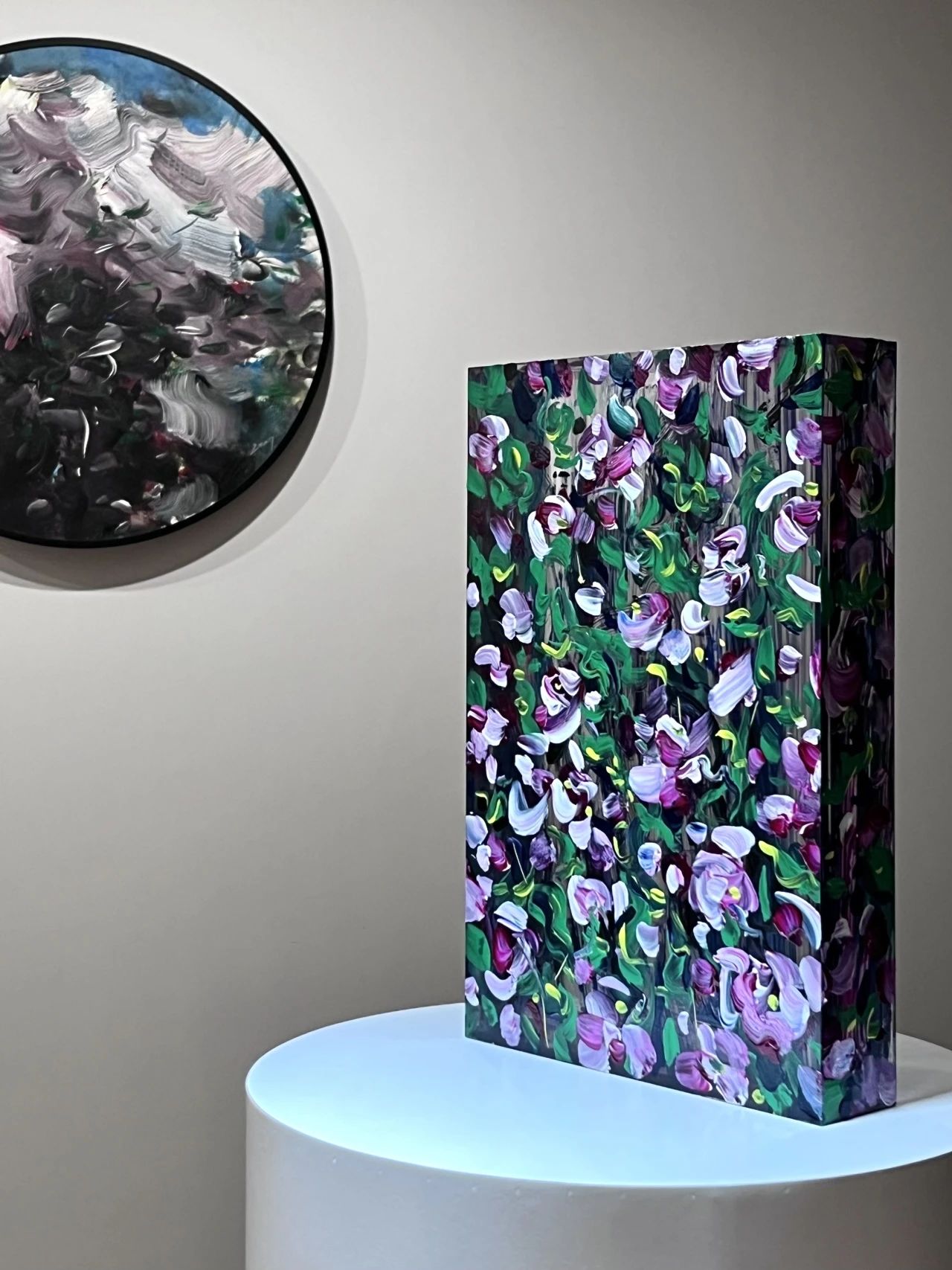 他永遠(yuǎn)都在嘗試新的方式與媒介。他開(kāi)始嘗試直接在透明亞克力上作畫(huà)。光滑與透明給他帶來(lái)新的觸覺(jué)與視覺(jué)感受,激勵(lì)他用不同于布畫(huà)油畫(huà)的手法去涂抹、去刮蹭。他取消了畫(huà)面的透視與立體法則,因?yàn)樗庾R(shí)到材質(zhì)的透明性本身就是對(duì)立體的反動(dòng),為什么要將通透覆蓋掉?為什么不能把通透作為畫(huà)面的一部分而存在。通透與光影將會(huì)重構(gòu)出新的畫(huà)面,且隨著光影的變化而變化。