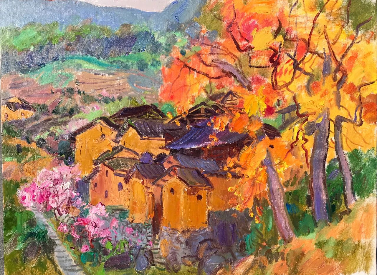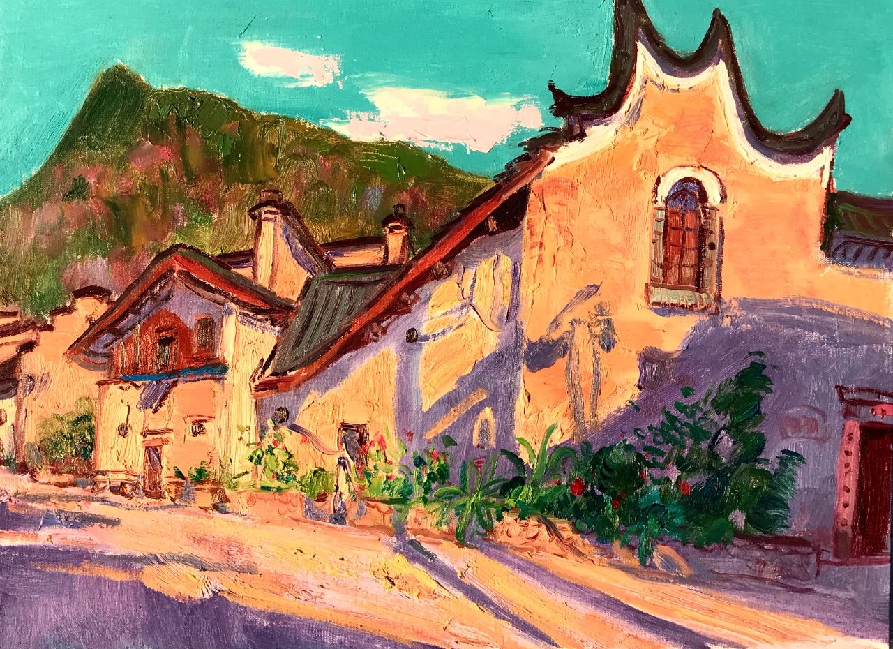 新年伊始便前往福建寫生,驅(qū)車一千四百多公里來(lái)到千年古鎮(zhèn)穆陽(yáng)。和北方的天寒地凍相比,這里滿目翠綠溫度適中。已有千年歷史的穆陽(yáng)十分重視文化,聽說(shuō)我們到來(lái),陳鎮(zhèn)長(zhǎng)親自當(dāng)向?qū)В瑤覀儏⒂^古鎮(zhèn)風(fēng)貌和風(fēng)土人情。從鎮(zhèn)長(zhǎng)的介紹中得知穆陽(yáng)和山東一脈相傳,先祖是山東曲阜的魯繆公,繆公后人封官于此定居,先名為繆洋至宋代改名穆陽(yáng),鎮(zhèn)上建有東魯仰止祠也是對(duì)故鄉(xiāng)的思念吧。走在古鎮(zhèn)小巷石馬兜里,青石板路的小巷掛滿了油紙傘,在瀝瀝的小雨中,油紙傘便成為了最美的風(fēng)景。古鎮(zhèn)的古碼頭邊生長(zhǎng)著和古鎮(zhèn)一齊長(zhǎng)大的參天大榕樹,人們?cè)跇涫a下洗衣、聊天、玩耍,生活節(jié)奏悠然自得。飄散著濃濃的生活氣息和人情味。