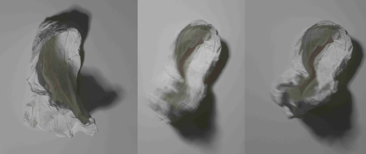 揉捏手上的紙巾,如此簡單的材質(zhì)與動作,好像并沒有什么令人驚訝的事情!不是很多人開始揉捏嗎?比如有藝術(shù)家揉捏泥團,通過掃描數(shù)字化再3D打印出來;比如有藝術(shù)家以手指,在宣紙上按下指??;也有建筑師以手指隨意揉捏紙巾,而以數(shù)字化建模作為思考的示例。因此,現(xiàn)代藝術(shù)對于動作偶發(fā)的發(fā)現(xiàn),以及對于任一材質(zhì)的即興處理,是自從達達主義與波洛克以來,已經(jīng)成為當代藝術(shù)的基本常識,又有何驚訝的呢?