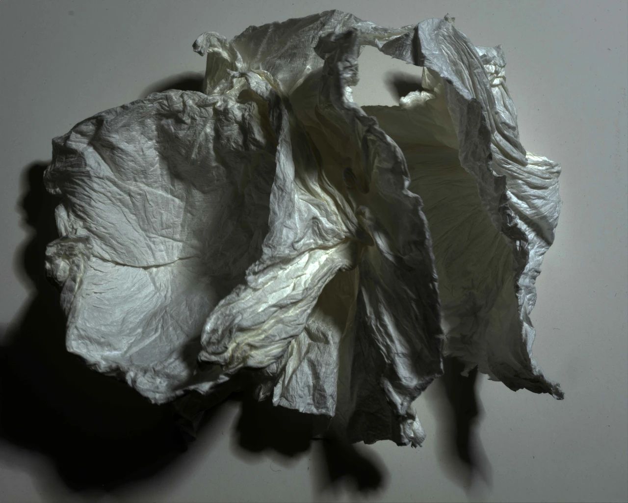 當然,你可以說,老杜尚的老朋友Man Ray就給杜尚的現(xiàn)成品拍攝過,而且留下的僅僅是攝影作品,或者,前不久日本攝影師杉本博司拍攝現(xiàn)代藝術(shù)經(jīng)典作品,給這些繪畫與雕塑帶來了新的靈暈。那么,老赫的這些衛(wèi)生紙揉皺出來的攝影作品,具有什么樣的獨特性呢?
