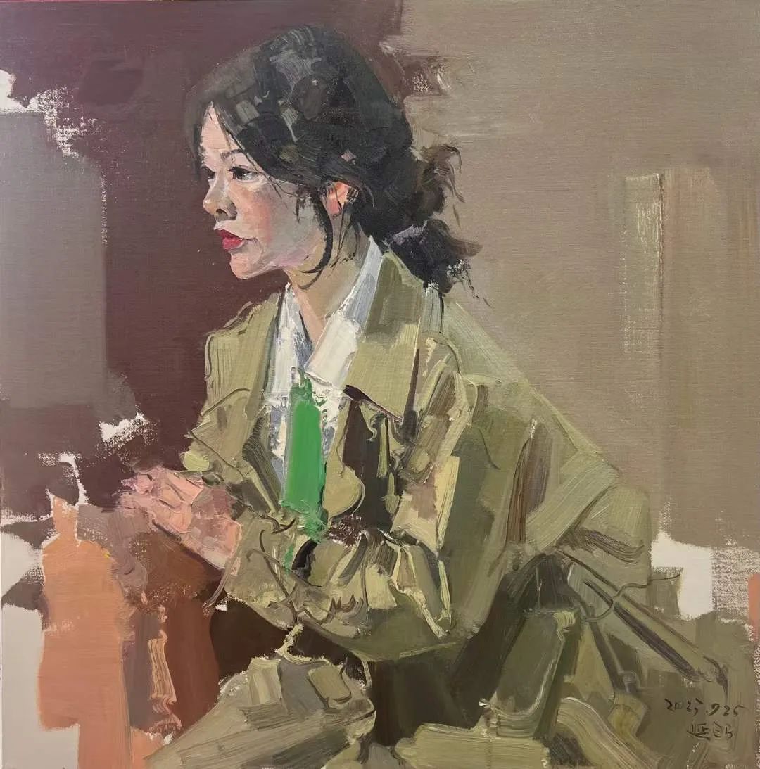 我在《中國油畫家》雜志第二期選登張延昭作品時,曾邀請他寫一篇文章介紹自己的創(chuàng)作道路,但他不愿說得太多,僅僅給我提供了100來字的創(chuàng)作感言:“油畫民族化的倡導(dǎo)是很長時間的事了,幾十年來都不乏努力之人,也取得了相當(dāng)成就。然而就肖像創(chuàng)作而言,想放棄大家普遍認(rèn)可的模式與技術(shù),似乎又有一定困難。我嘗試著在不放棄形象寫實性的前提下,盡可能使畫面表達(dá)得輕松與抒情,在不喪失油畫語言特征的前提下,有意識地融入中國畫中的水墨意識,以達(dá)到東方似的審美與意蘊。”