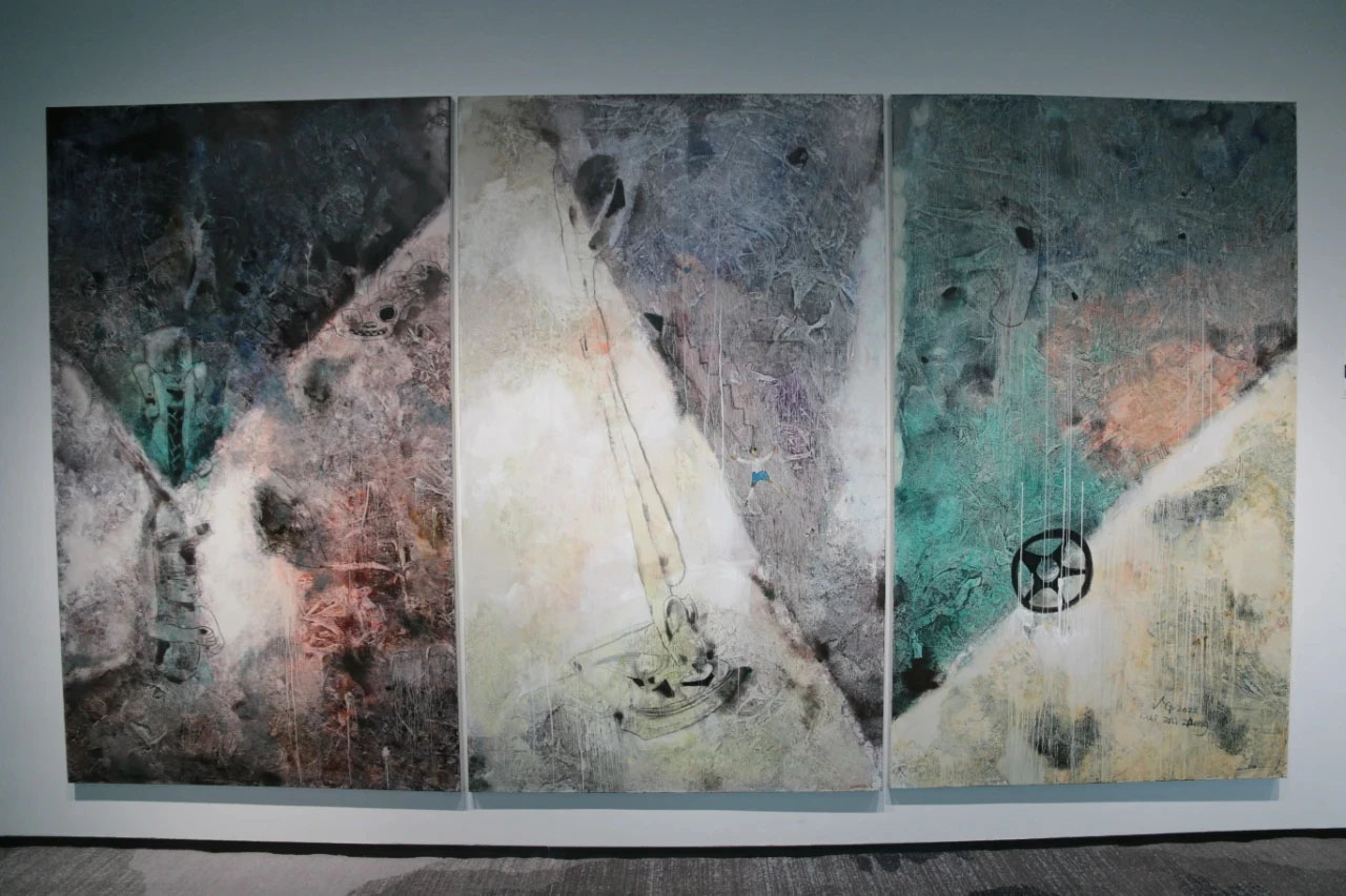 這些作品如《北緯30度》《城池與面具》《航海日志》《紅船日記》等,不僅呈現(xiàn)了藝術(shù)家對三星堆的深刻理解,還通過二度抽象的形式,展現(xiàn)了一種超越具象的藝術(shù)風(fēng)格。崔治中用他的畫筆,講述了一個個關(guān)于三星堆的故事,引發(fā)人們對于生命、歷史和美的深層思考。