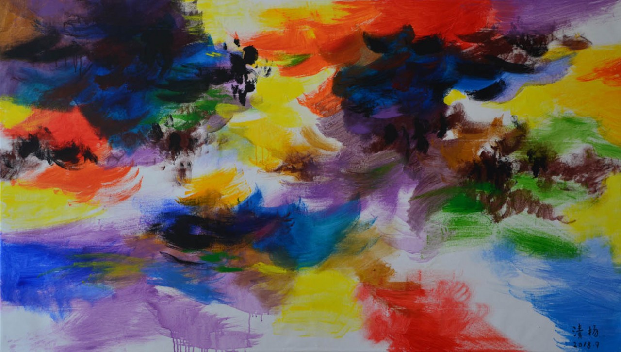 我的抽象畫以水彩抽象和丙烯抽象為主。原來我畫水墨抽象。1999年夏天,看到我國水彩畫家寧泓麟老師畫一幅水彩風景畫,被水與色的交融所吸引。當時我正研究抽象,想丙烯和水彩道理是一樣的,抽象一定效果不錯,就試了試。在水的作用下,顏色出現(xiàn)了神奇的效果。不過,感覺很難控制畫面。從畫面施水到畫面干燥,只有7、8分鐘的時間。在這么短的時間內(nèi)要考慮構(gòu)圖、色彩搭配、黑白灰、筆觸與機理,難度極大?,F(xiàn)在畫抽象畫的人很多,可畫丙烯抽象的人極少,不知道是不是這個原因。通過反復試驗,掌握了一定的技巧。我追求下筆的第一感覺。在我看來,抽象是一種需要。在水與色的交融時,畫家的感情得以宣泄。在下筆前,一切感覺都是模糊的,隨著筆觸的積累,抽象的形態(tài)逐漸清晰。我認為在繪畫的初始階段追求意境是很難的,而繪畫的后期是形成意境的主要階段。這個時候用筆既要快,又要準確,是點睛之筆。整個畫面追求語言的醇厚深沉,機理的斑駁錯綜,布陣的層見疊出,表達的淋漓酣暢。