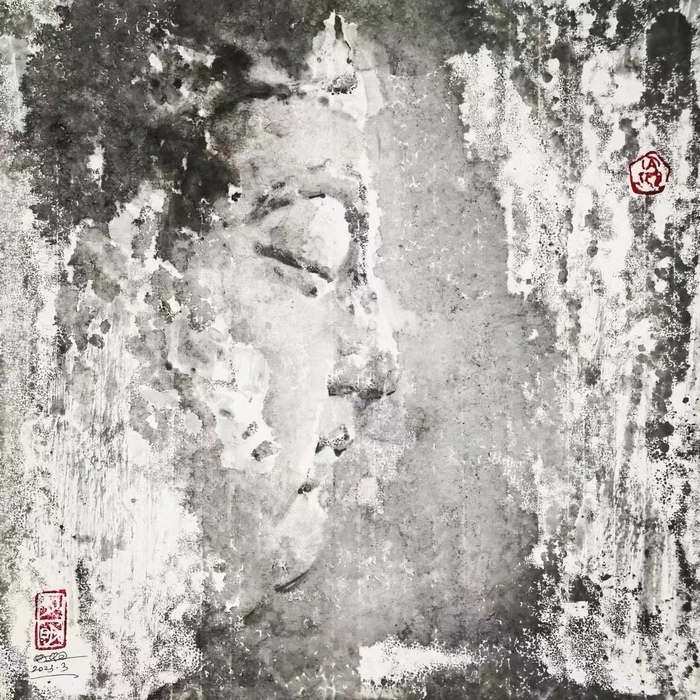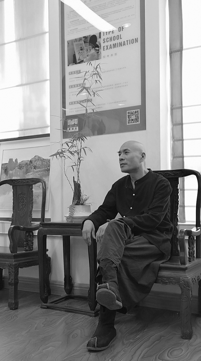 他的繪畫作品不僅營造了禪味十足的氛圍,還融入了道法自然的元素,如同逍遙在出世與入世之間,感受到了當下的歡喜。他尤其喜歡創(chuàng)作佛教題材的作品,也許是因為這類題材的作品更適合抒發(fā)內(nèi)心的情感,體現(xiàn)出人性本真的簡單和快樂。在創(chuàng)作中,他將西方繪畫的技法融入中國傳統(tǒng)藝術(shù)之中,形成了一種簡潔明快的藝術(shù)風格,既具有中國傳統(tǒng)藝術(shù)的韻味,又不失現(xiàn)代感和藝術(shù)張力。