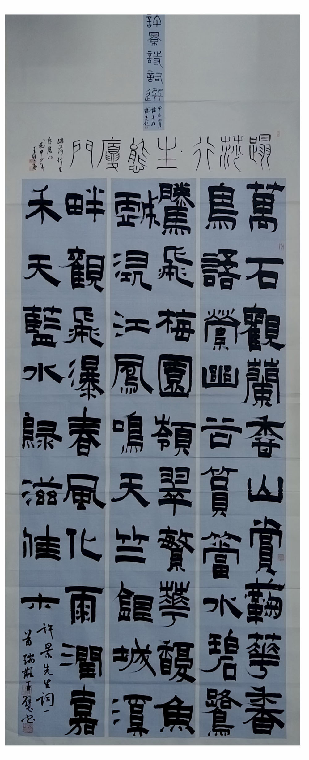 近日,廈門市老干部藝術(shù)院組織藝術(shù)家參與“循足跡,悟思想,展輝煌”生態(tài)文明建設(shè)廈門實踐藝術(shù)采風(fēng)活動。王璧根據(jù)廈門詩詞界名家的詩作創(chuàng)作了幾幅書法作品和筆會作品,選登如下。