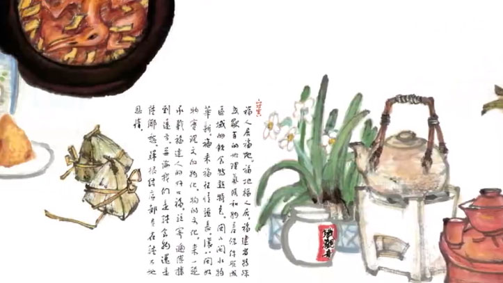 題跋:福人居福地,福地福人居,福建省特殊或獨有的地理、氣候和物產(chǎn)條件形成區(qū)域的飲食特點、特色。閩山閩水物華新,福來福往情誼長,讓八閩好物實現(xiàn)文的物化,物的文化,來一起承載福建人的好口福,并寄遞傳播到遠方,無論我們是食物還是談鄉(xiāng)愁,歸根結(jié)底都是在談大地恩情。