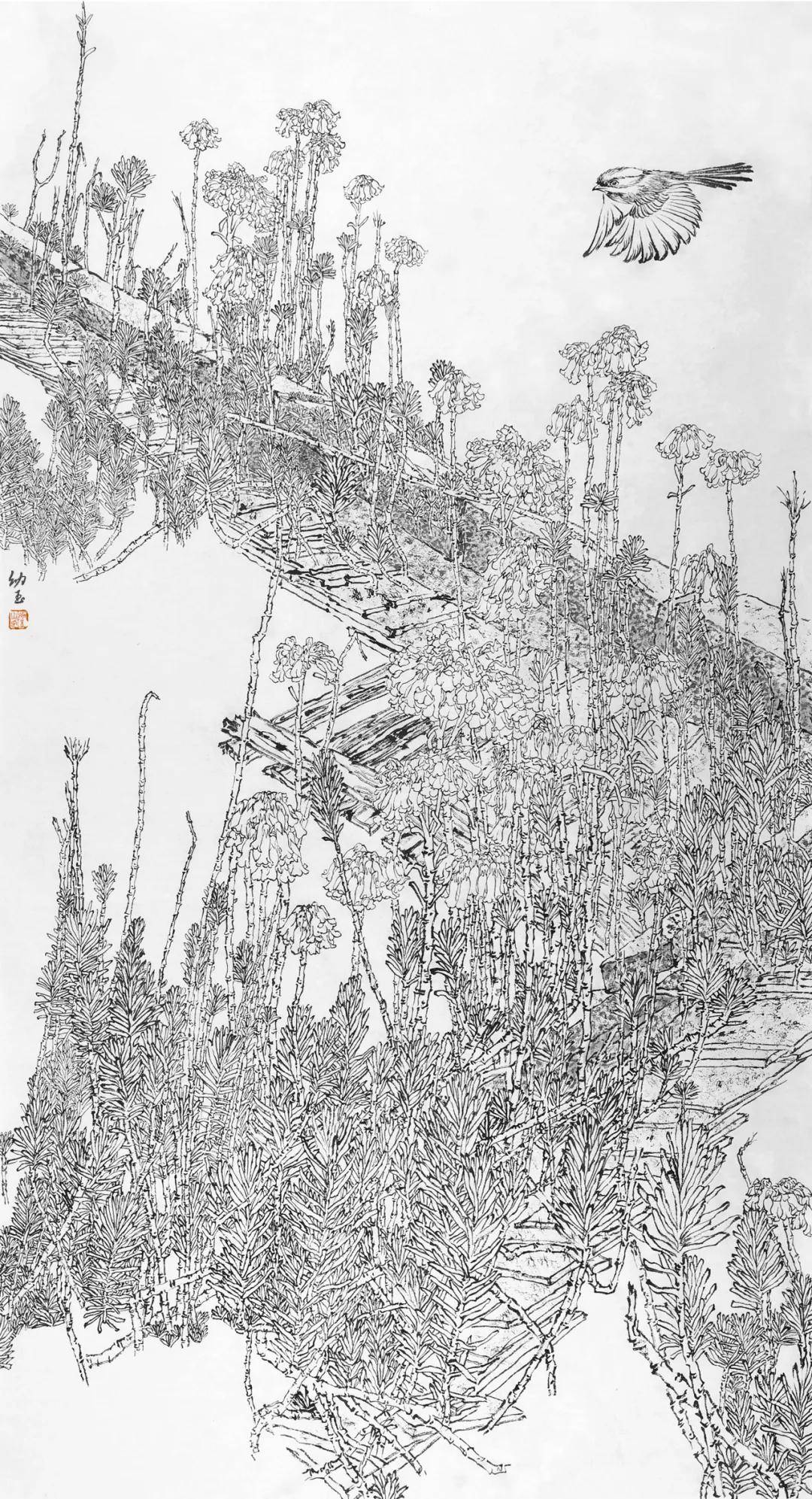 《落地生根》 196cm×83cm 許幼玉 中國(guó)畫(huà)白描