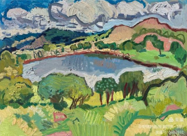 楊繼鋒酷愛藝術(shù),他幾乎把繪畫當(dāng)作自己的全部生活。正是由于有著像梵·高那樣“渴望生命”的懷想,他才一次又一次走向大地,走進(jìn)自然的懷抱,在那里奮筆抒發(fā),留下一幅幅貫注了充沛感性、飽蘸濃墨重彩的作品。在王克舉先生主持的以"寫意精神"為主旨的油畫研究群體中,他堪稱一員猛將,不善言辭能吃苦,不畏艱辛敢拼搏。依我簡論,在三個方面尤其凸顯出他的意志與毅力:一是他能長期在寫生上沉下心來,在東往西去、走南駐北的寫生之旅中,都有他在團(tuán)隊中的堅守。無論在怎樣的地理、場景、氣候中寫生,他總是不計條件,埋頭作畫,專注投入,所畫作品難以計數(shù),以“量”的積累達(dá)到“質(zhì)”的提高。二是在克舉先生的指導(dǎo)下,他掌握了油畫寫生的要領(lǐng),注重把握重點(diǎn),概括自然物象的形貌,形成富有節(jié)奏的畫面布局。他尤其抓住色彩表現(xiàn)力這個語言,在感受自然色彩的基礎(chǔ)上提高色彩的純度、明度和強(qiáng)度,將自然風(fēng)景的色彩關(guān)系轉(zhuǎn)換為畫面色彩的結(jié)構(gòu),以此為主導(dǎo)統(tǒng)攝畫面,形成以色彩為關(guān)鍵詞的敘事。在色彩的感性方面,他顯露出優(yōu)秀的稟賦。三是在“寫意”這個課題上不斷加深認(rèn)識,將油畫寫生的直接性與臨場表達(dá)的表現(xiàn)性結(jié)合起來,在畫面構(gòu)成上突出平面感,形成富有張力的畫面空間,在運(yùn)筆上更是縱橫恣意,用極為隨性放松的點(diǎn)、線、面組合交織,使筆意、肌理與色調(diào)、造型渾然一體,展現(xiàn)出“寫”的生動性和“意”的豐富性。觀賞他的作品,一種“天人合一”的精神屬性了然在目,一種“直抒性情”的快意也怦然感人。