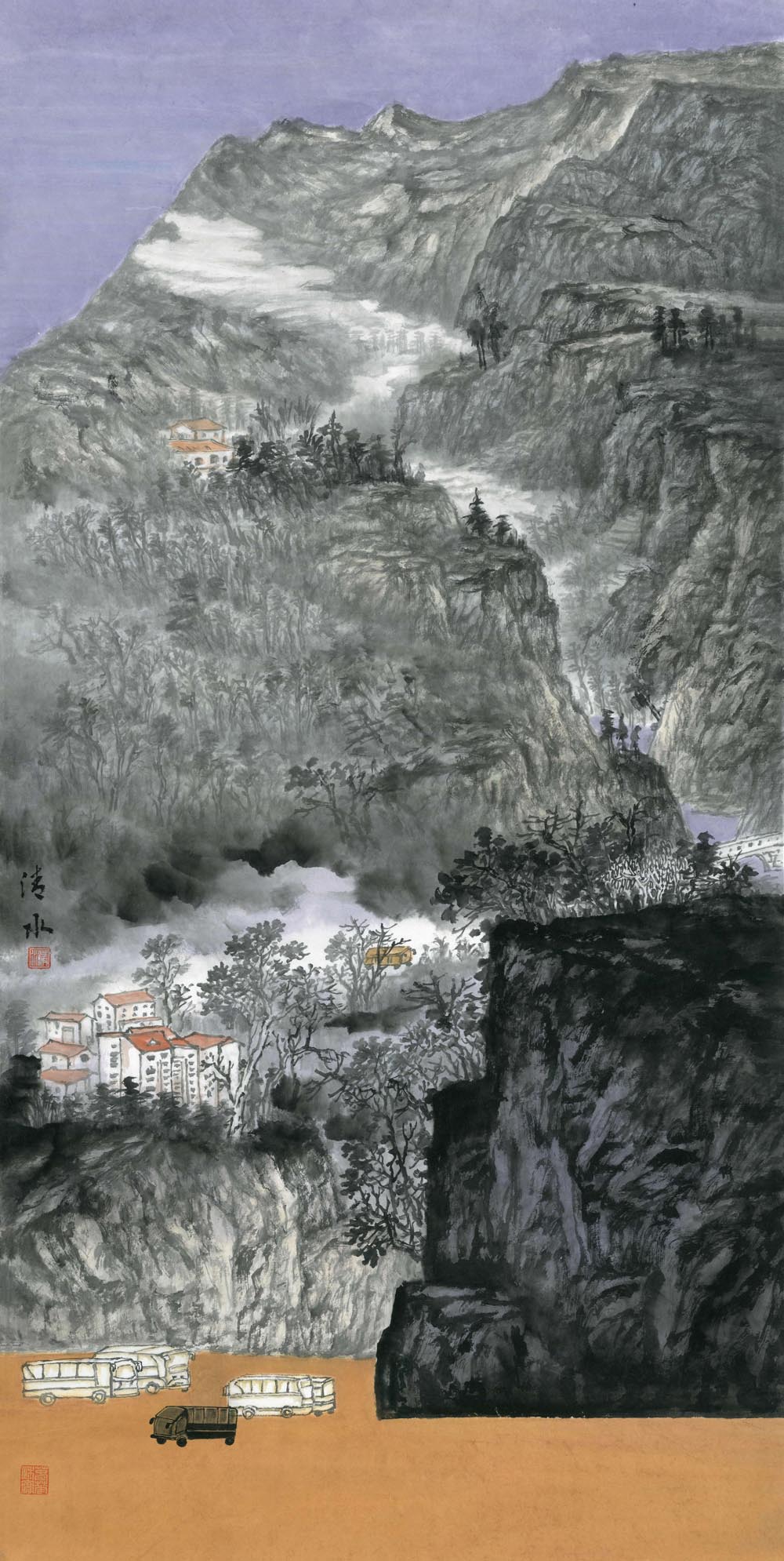 陳清水《家山新貌》69x138cm