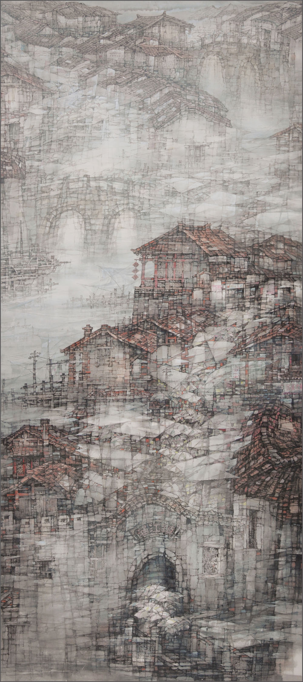 徐學(xué)仕《古鎮(zhèn)印象》96x178cm