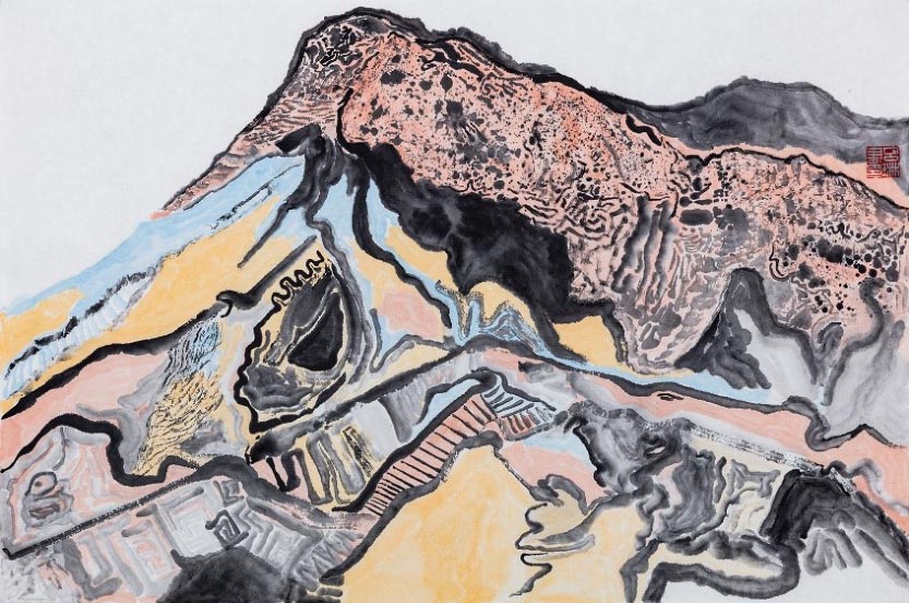 新意象水墨在不斷地探尋與摸索中應(yīng)運(yùn)而生,它不再局限于傳統(tǒng)的筆墨、色彩、構(gòu)圖等技法的運(yùn)用,而是大膽引入各種新元素、符號(hào)化的點(diǎn)線面,創(chuàng)造出獨(dú)特的視覺(jué)效果,形成自己的繪畫(huà)語(yǔ)言。在技法上,新意象水墨融合了西方繪畫(huà)的表現(xiàn)手法,如色彩的運(yùn)用、造型的夸張等,使得作品在保留傳統(tǒng)水墨韻味的同時(shí),更加大氣自然,表達(dá)內(nèi)容也更加豐富多彩,呈現(xiàn)出一種全新的藝術(shù)風(fēng)貌。